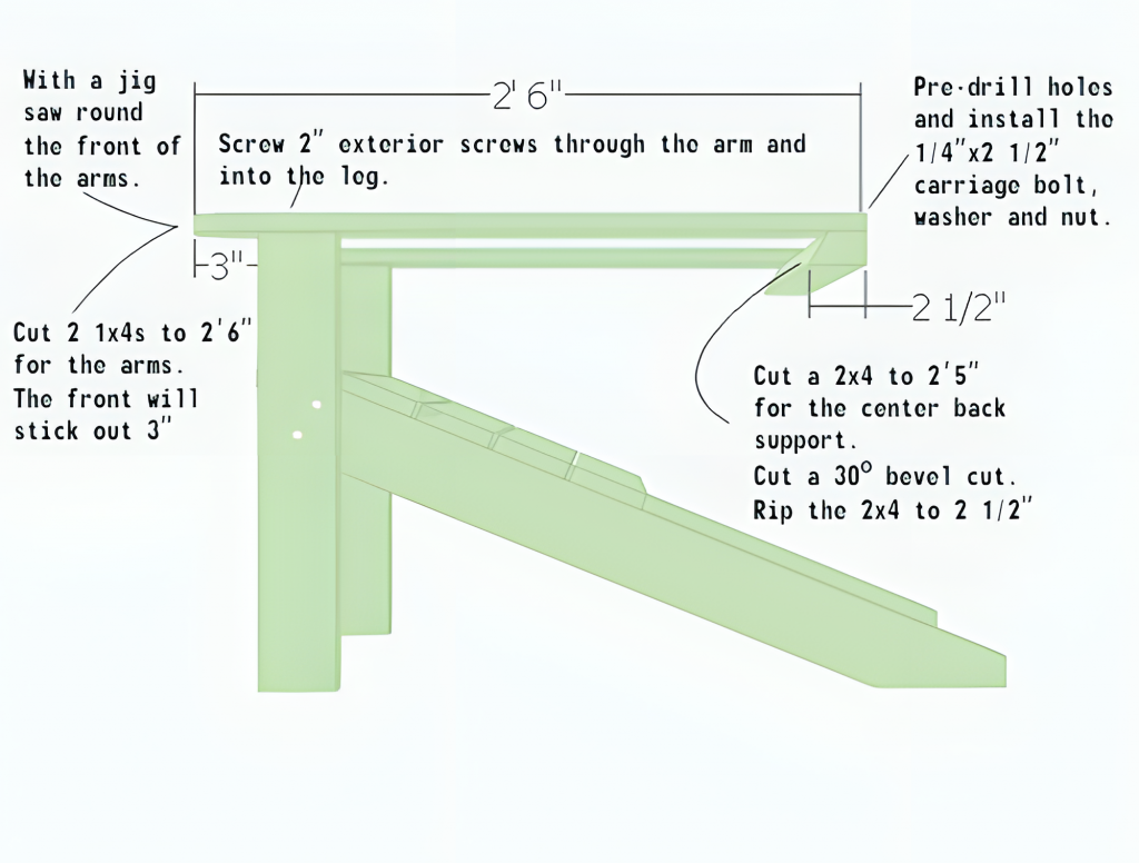 (2×4) Leg, Seat Support, Center Back Support, Bottom Back Support | 2 | 8’ |